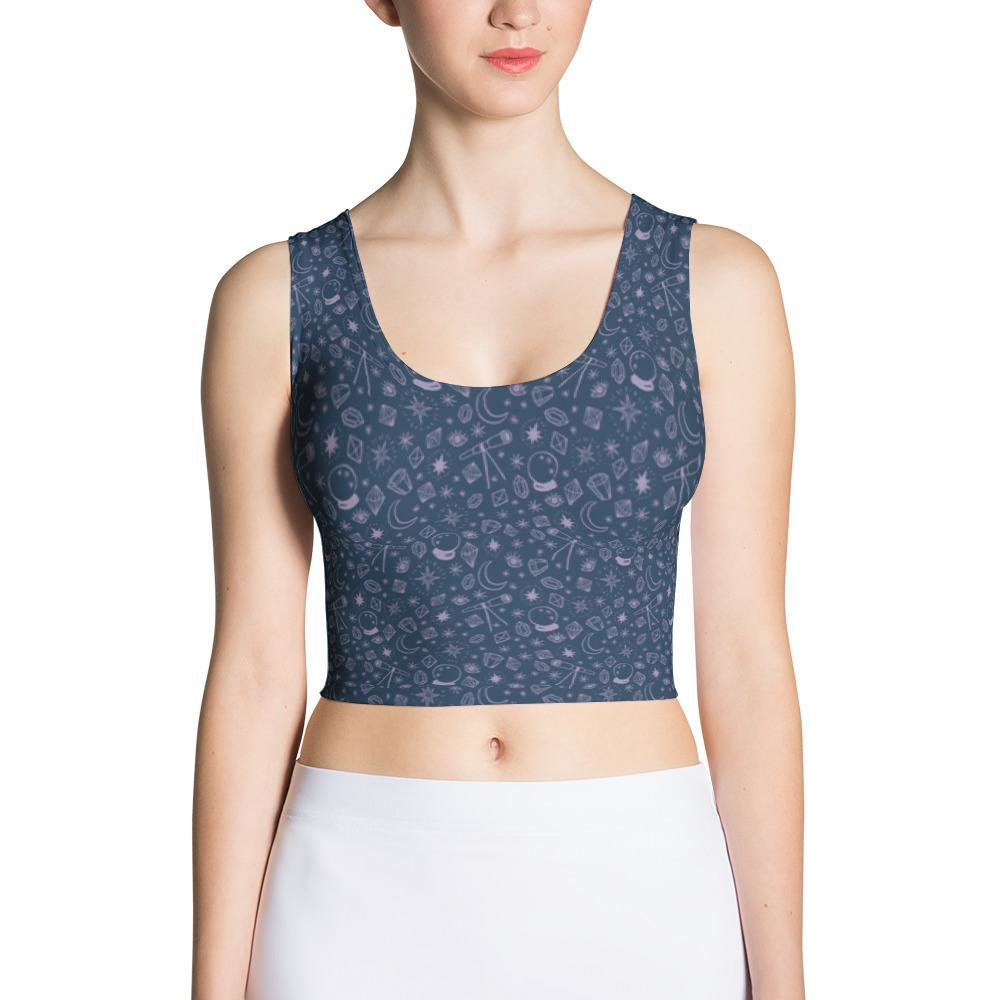 This all-over printed, body-hugging crop top matches our Midnight Magic Yoga Leggings and has a four-way stretch, which means fabric stretches and recovers on the cross and lengthwise grains.